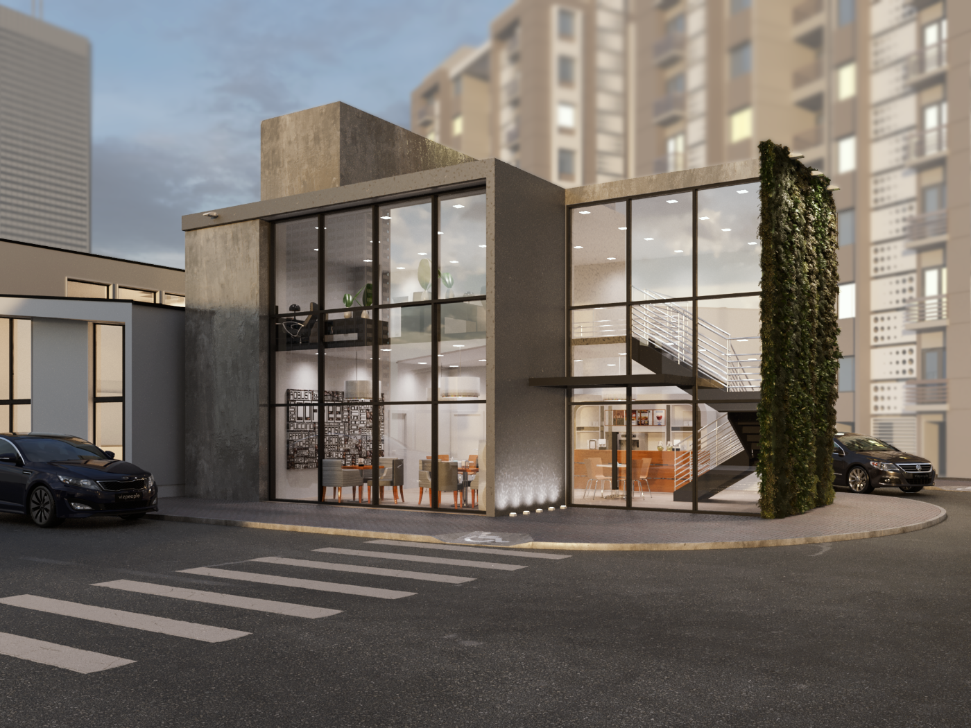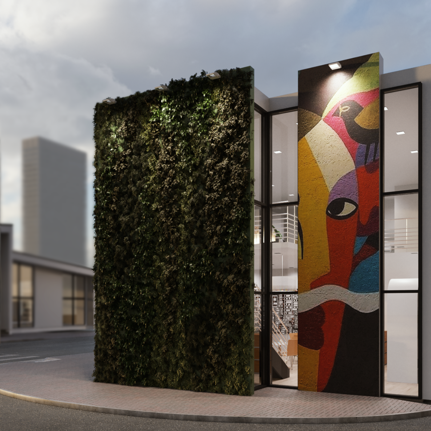 Pavimentos amplos e planta livre para aproveitamento da área útil conforme a necessidade do cliente. Grandes aberturas para face leste, permitem um olhar para a praça, repleta de vegetação não comprometendo o conforto térmico no interior do edifício, proporcionando iluminação natural e se conectando com a praça de grande circulação e permanência de pessoas do bairro.