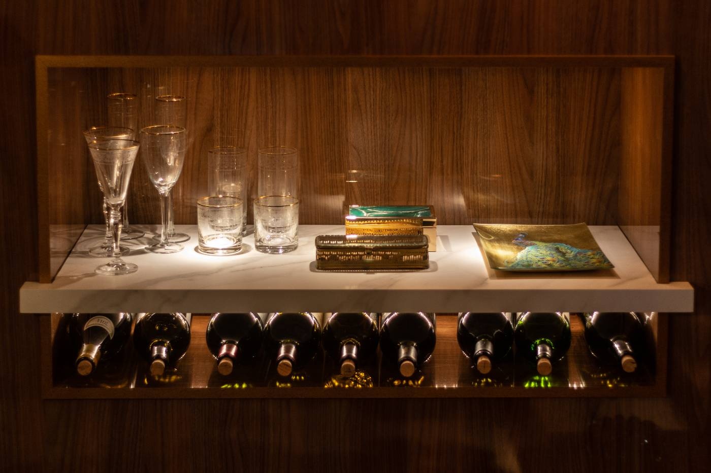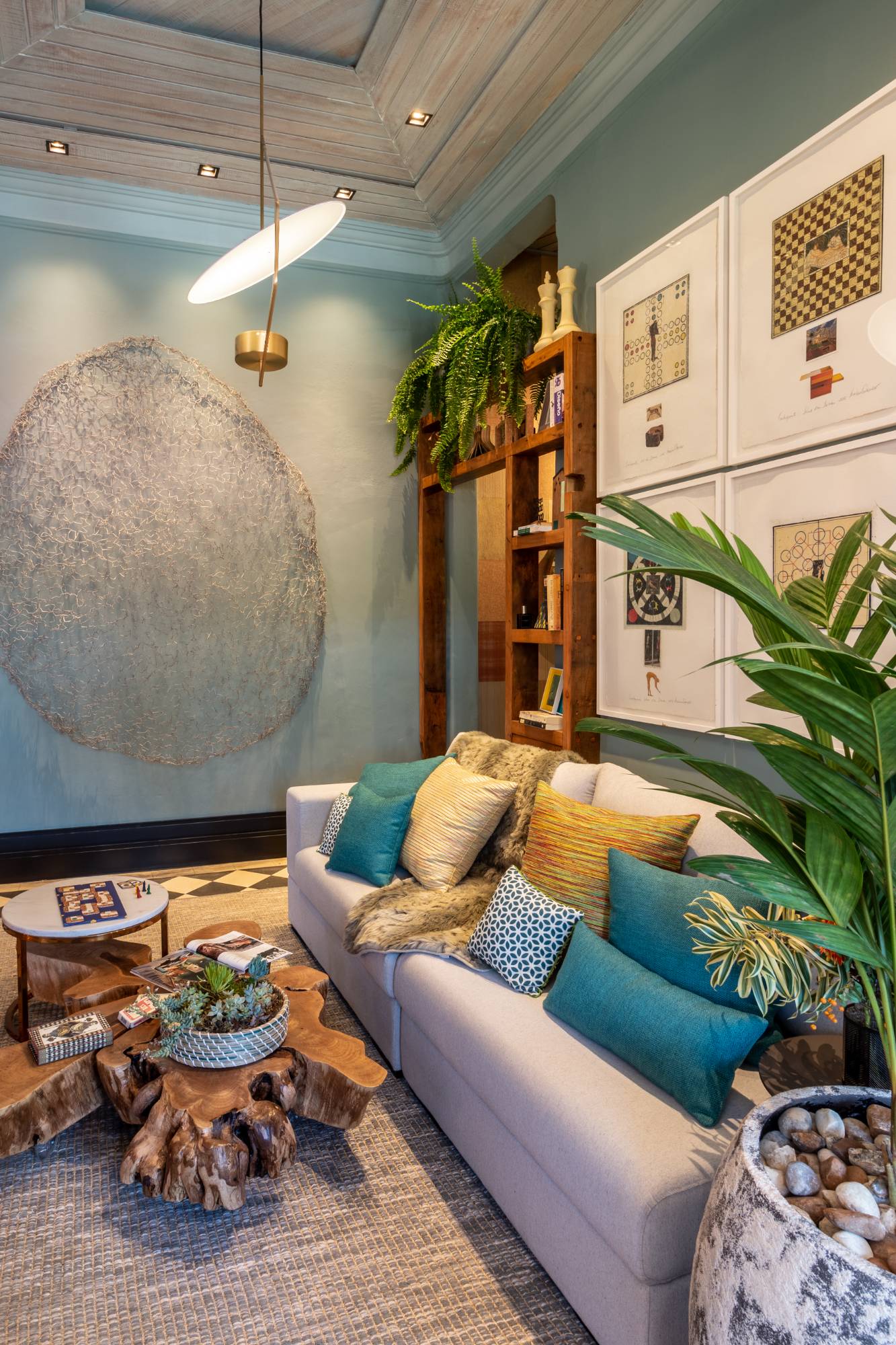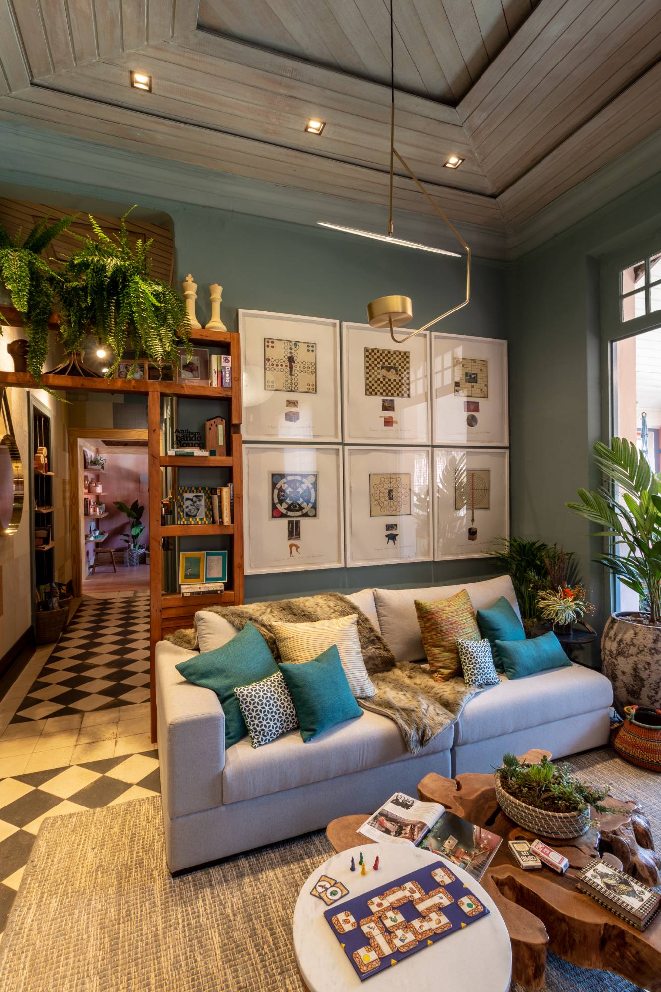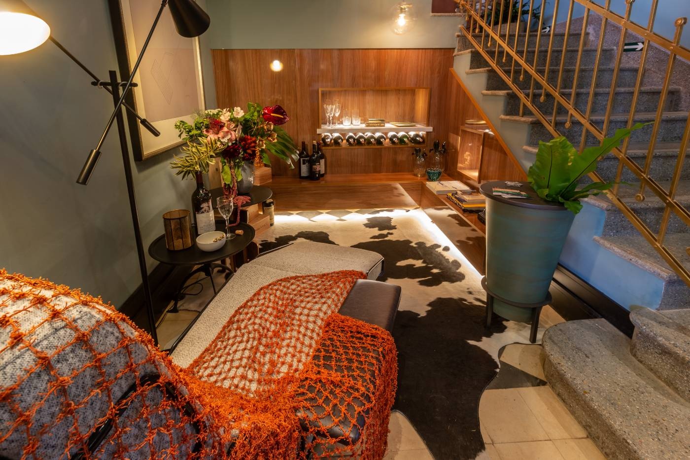 Realizada pela Arquitetura Ideal juntamente com a arquiteta Marília Ferraz e a Bióloga e paisagista Helena Overmeer, atuamos em 2 ambientes, o primeiro foi o Halll da escada no ambiente térreo, com uma área de estar e adega e o outro no andar superior que era o Family Room, ambiente para os encontros e permanência dos familiares, utilizando da “low technology” um local para jogar cartas, jogos de tabuleiros ou simplesmente uma boa conversa com pessoas queridas.